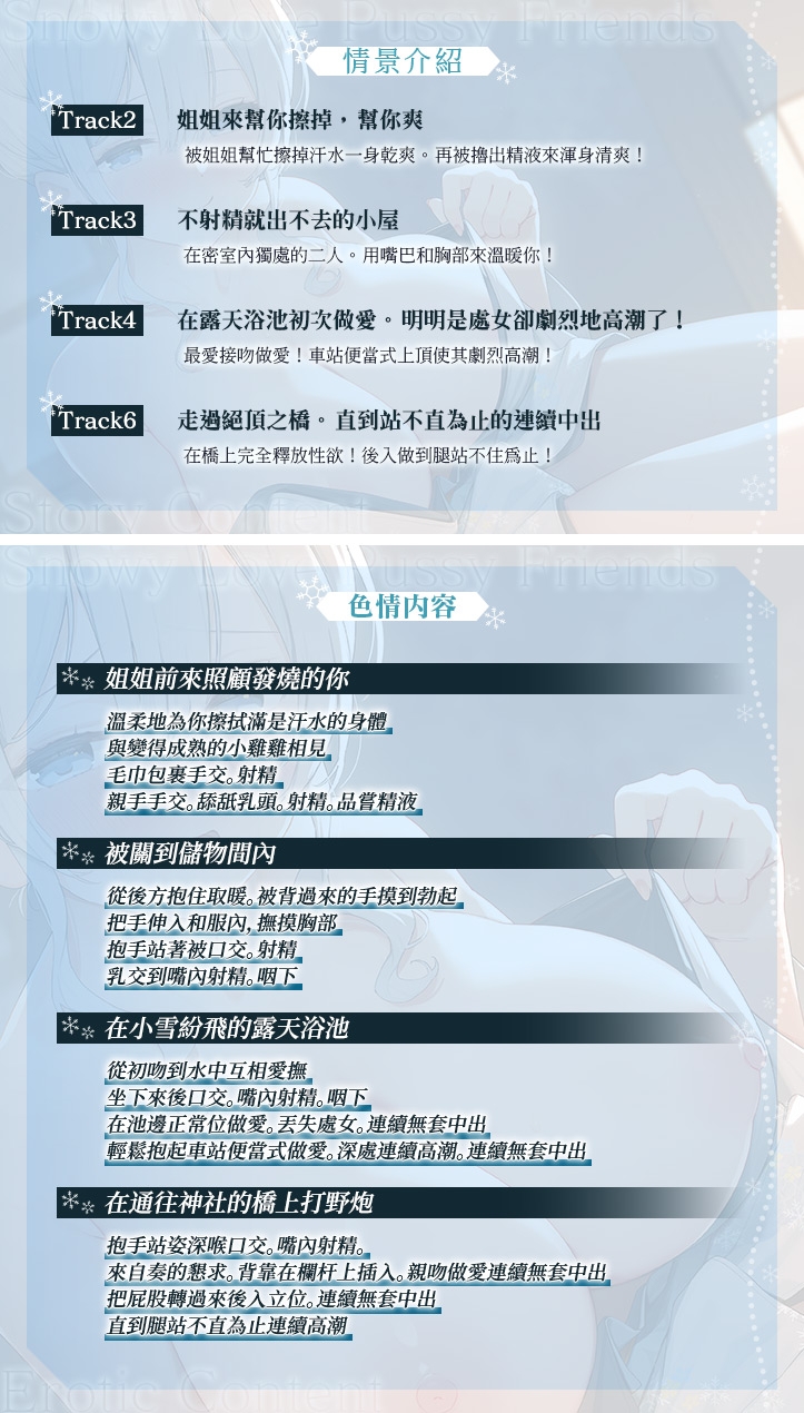 ![【繁體中文版】雪戀小○友 ~毫不退讓的奏姐姐・來自天然系姐姐的甜蜜關照榨精…但是精力過於旺盛,不小心讓她迷上了。~ [青春×フェティシズム] 【繁體中文版】雪戀小○友 ~毫不退讓的奏姐姐・來自天然系姐姐的甜蜜關照榨精…但是精力過於旺盛,不小心讓她迷上了。~ [青春×フェティシズム]](http://img.dlsite.jp/modpub/images2/parts/RJ01511000/RJ01510678/683b1d55cf8b3efb5daf9705bf618c08.jpg)