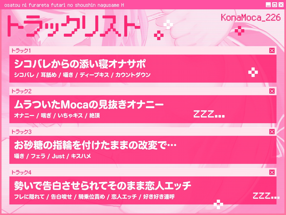 ![【VRSNS】お砂糖に振られた二人の傷心慰めえっち ~勢いで告白させられてそのまま恋人確定射精キメちゃう話~【バイノーラル】 [朝焼けティータイム] 【VRSNS】お砂糖に振られた二人の傷心慰めえっち ~勢いで告白させられてそのまま恋人確定射精キメちゃう話~【バイノーラル】 [朝焼けティータイム]](http://img.dlsite.jp/modpub/images2/parts/RJ01525000/RJ01524425/1e7a4fd9a774a441f5bbf2d5fee1a71a.jpg)