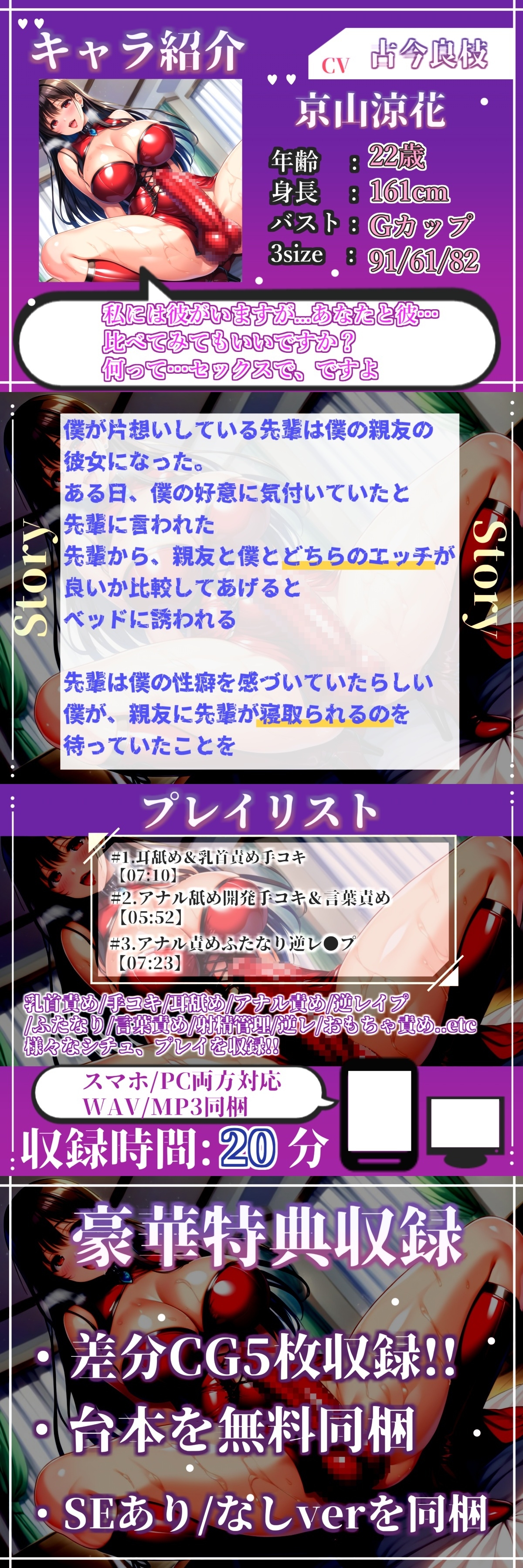 ![寝取られ癖のあるふたなり女先輩に誘われて彼氏のち●ぽと比較罵倒されながら『逆・種付け』されて、男なのに孕まされて彼女専用のオスオナホとして童貞喪失するお話。 [M男の快楽] 寝取られ癖のあるふたなり女先輩に誘われて彼氏のち●ぽと比較罵倒されながら『逆・種付け』されて、男なのに孕まされて彼女専用のオスオナホとして童貞喪失するお話。 [M男の快楽]](http://img.dlsite.jp/modpub/images2/parts/RJ01527000/RJ01526027/46251a412c3658ff0643e38ff15831ed.jpg)