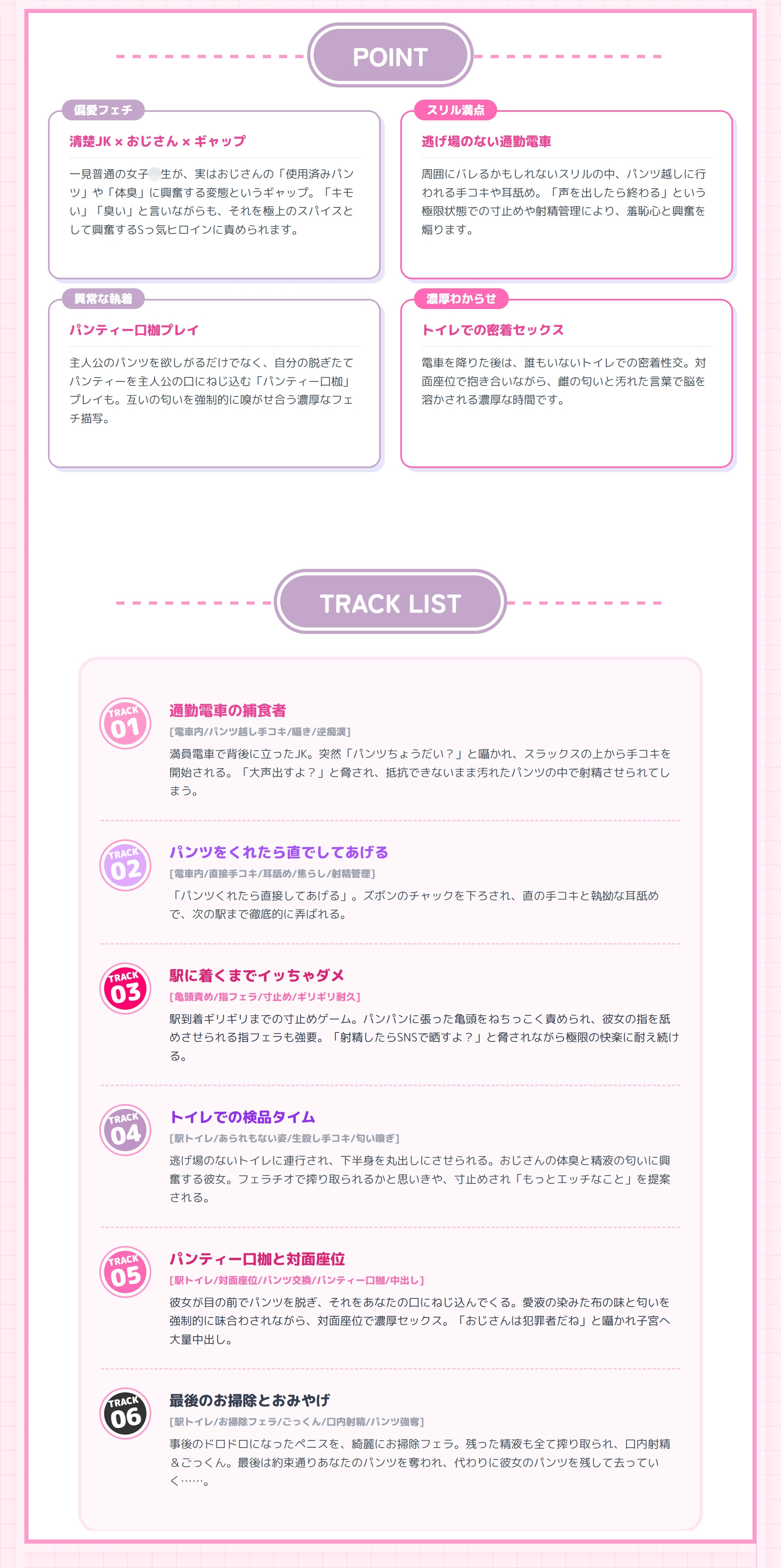 ![JKに痴○されて電車内で強○射精~おじさんおちんぽをちっちゃいお口でぱっくんしちゃうぞ♡~ [すいーとみるく] JKに痴○されて電車内で強○射精~おじさんおちんぽをちっちゃいお口でぱっくんしちゃうぞ♡~ [すいーとみるく]](http://img.dlsite.jp/modpub/images2/parts/RJ01527000/RJ01526082/ddc6d81fbd169a243d896203eefde16b.jpg)