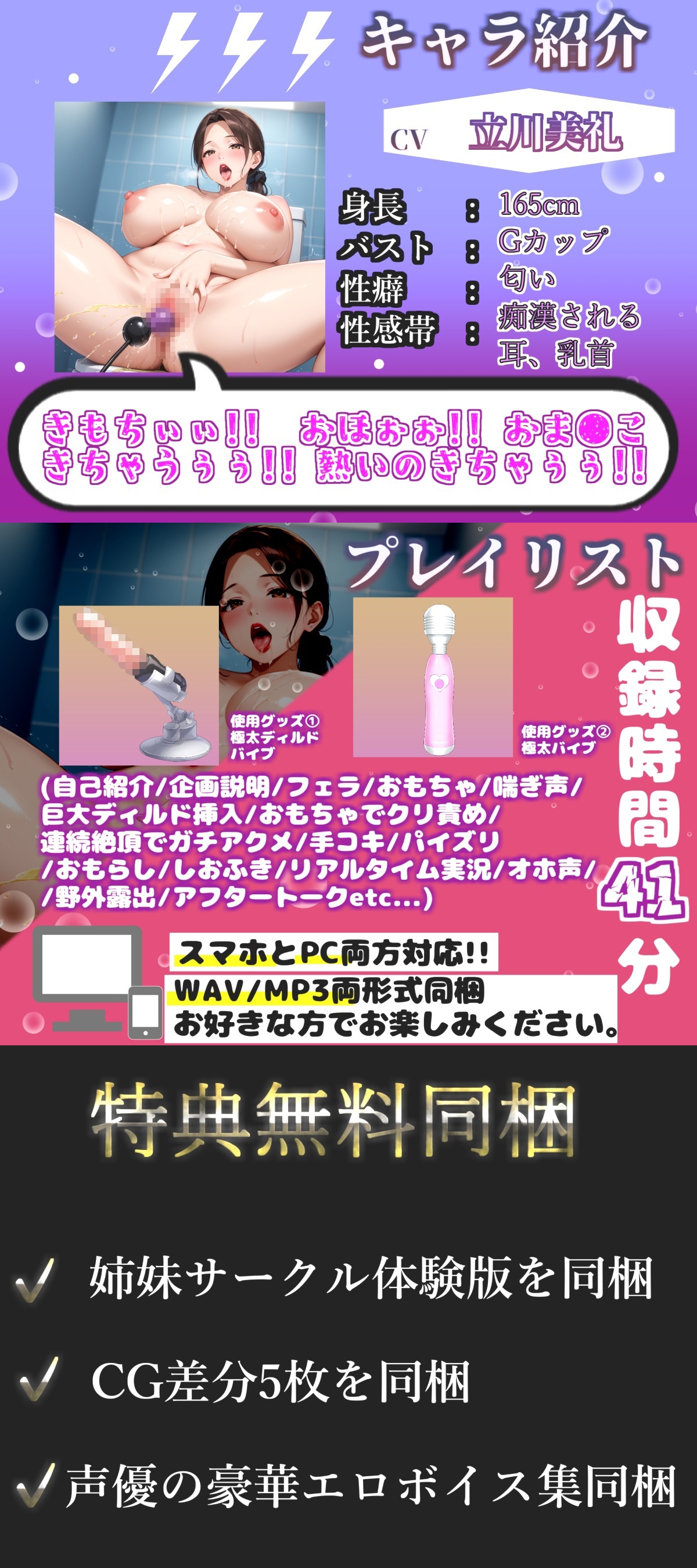 喘ぎ声、くちゅ音、フェラ音など音声から発せられる音は全て「本物」