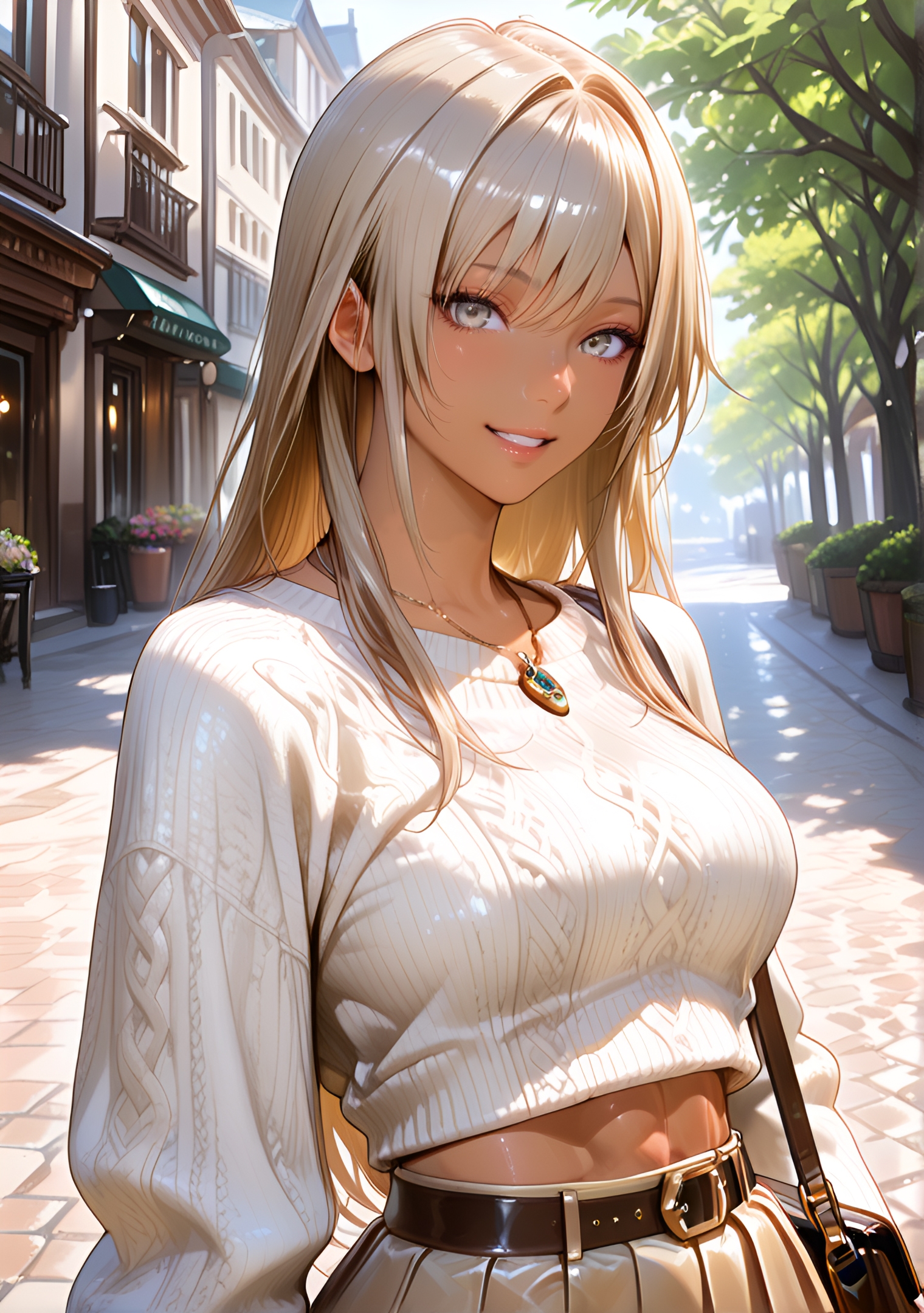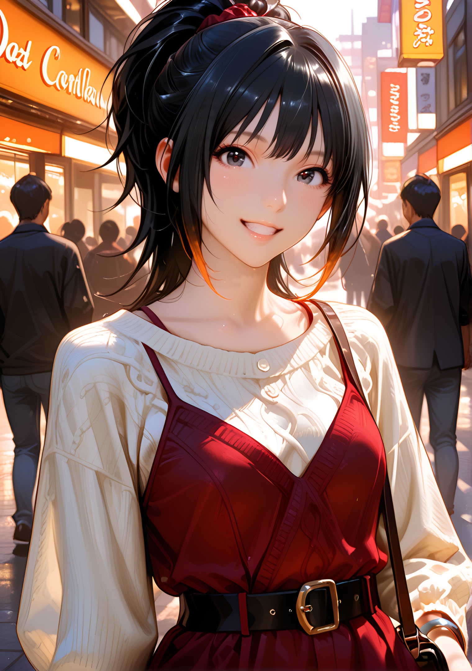 黒髪とヘーゼルの瞳のポニーテールで引き締まった体の彼女。実はひとりっ子で兄妹に憧れている。