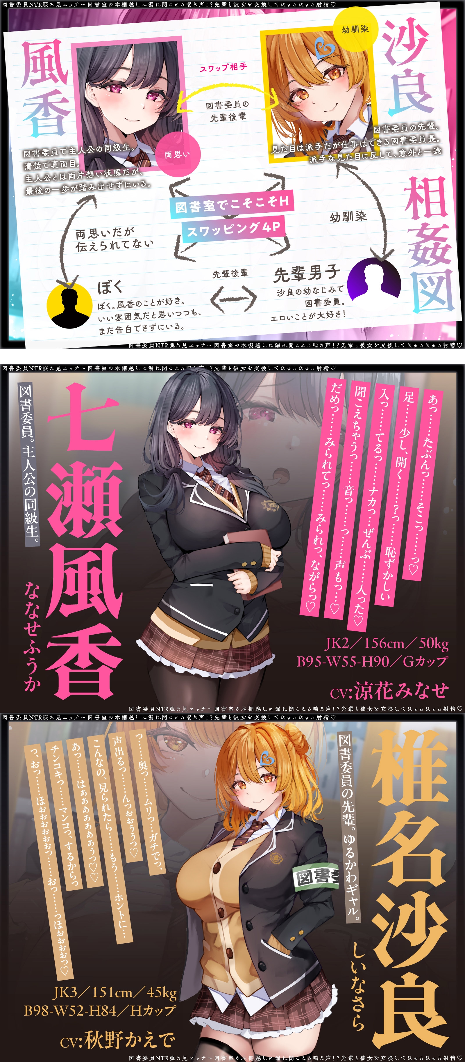 Free Download 【寝取られ×無声囁き】図書委員NTR覗き見エッチ~図書室の本棚越しに漏れ聞こえる喘ぎ声!?先輩と彼女を交換してびゅるびゅる射精♡【スワッピング】