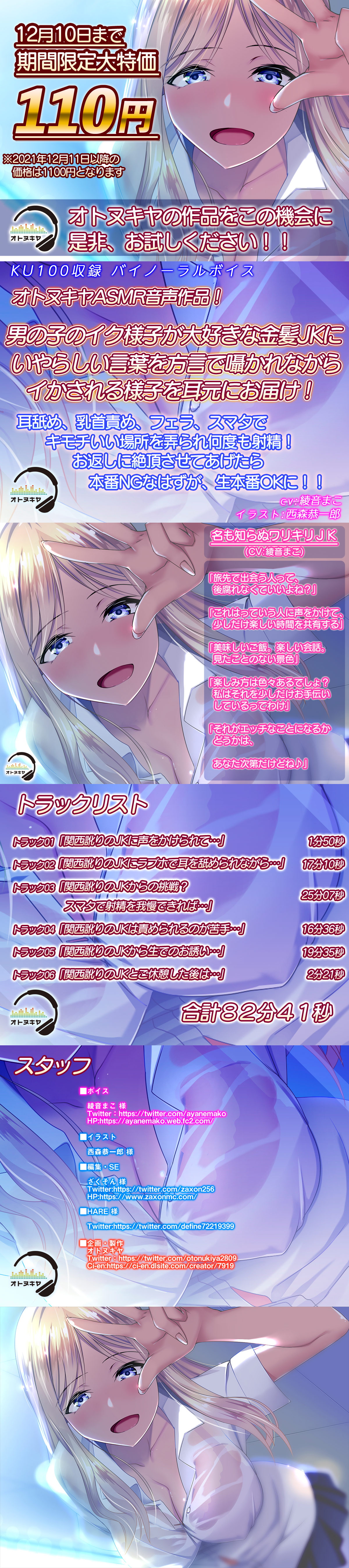 【12月10日まで110円大特価】耳舐めの逸材 関西JK【KU100 バイノーラル録音】 | RJ351906