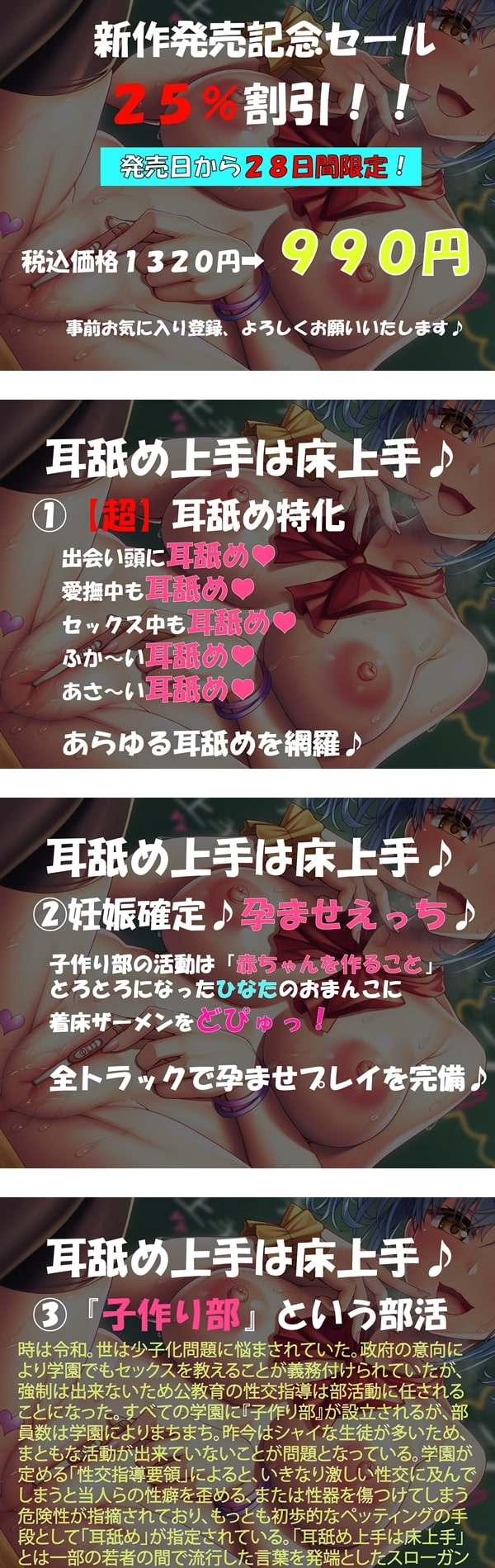 放課後、いきなりひなたに耳舐めをされ、子作り部への入部をお願いされる。