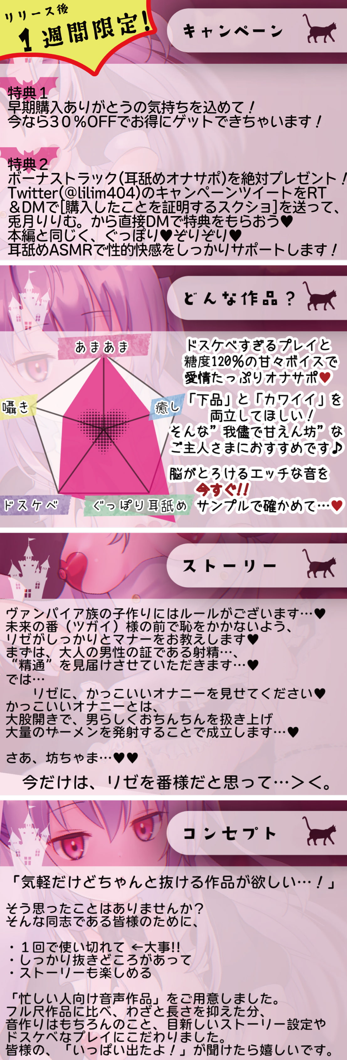 また、耳元で直接囁かれているかのような音作りにこだわって制作しましたので、ぜひ"イヤホン"を使ってお楽しみください。
