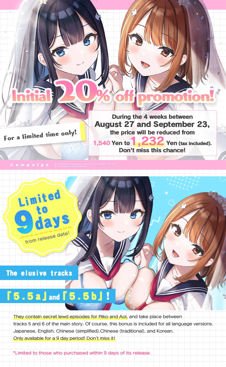 Also includes future episodes for Riko and Aoi (complete with sex, of course!).