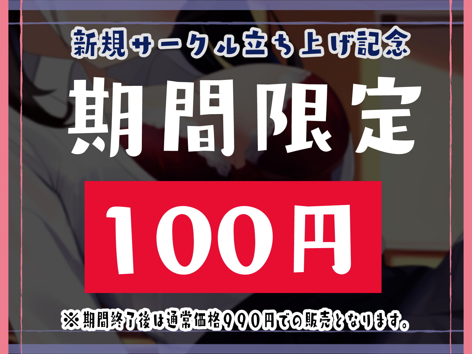 サークル立ち上げを記念として、 発売から1ヵ月の間は期間限定の特価価格でお買い求めいただけます。 大変お得となっておりますので、ぜひこの機会をお見逃しなく♪ ※期間終了後は通常価格の990円での販売となります。